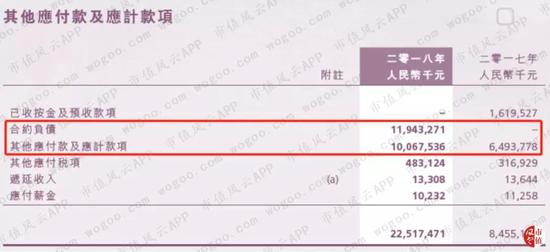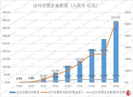 再来看应付合营企业款项,2018年应付合营企业款项为392.9亿元,这个科目总额在逐年递增,以2010年为基准,CAGR为119.5%,增长迅猛。