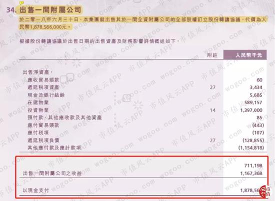 出售的全资附属公司为位于广州的写字楼星辉广场I的项目公司,计入损益表“其他收入及收益净额”中。