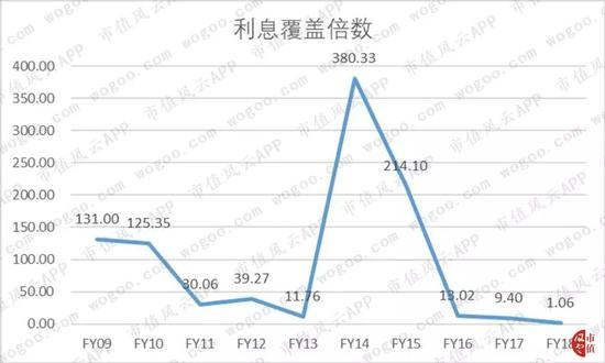 公司资产负债率一路高涨,另外,利息覆盖倍数偏低、仅有1.06,偿债压力大、流动性堪忧。