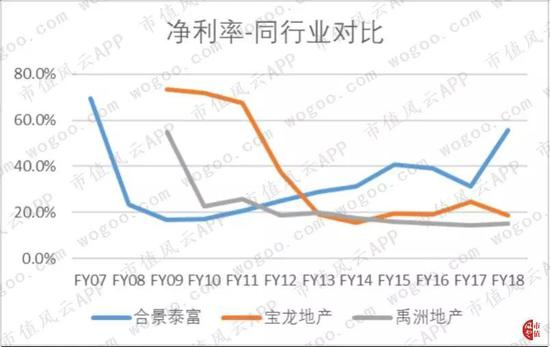 2018年,合景泰富、宝龙地产和禹洲地产的净利率水平分别为55.6%、18.6%和15.3%。