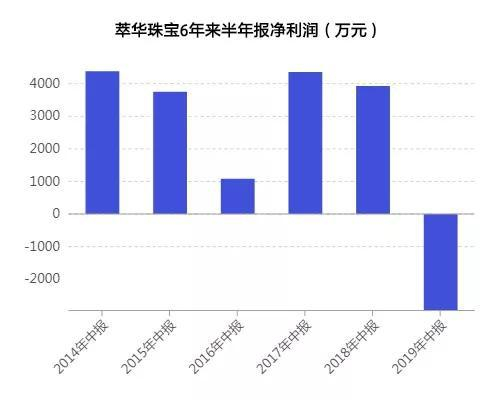 8月13日晚,萃华珠宝披露了半年报。2019年上半年,萃华珠宝实现营业收入10.92亿元,同比下降14.25%;归母净利润亏损2962.83万元,上年同期盈利3914.29万元。这是公司上市以来首次出现半年业绩亏损。