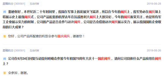 今年国庆大阅兵备受关注,沪深两市的互动易平台上,多家公司已被问询是否参与阅兵。