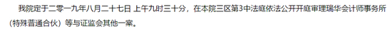 近日,北京法院信息网开庭公告显示,瑞华会计师事务所不服证监会处罚,起诉证监会,已于2019年8月27日在北京市第一中级人民法院开庭审理。