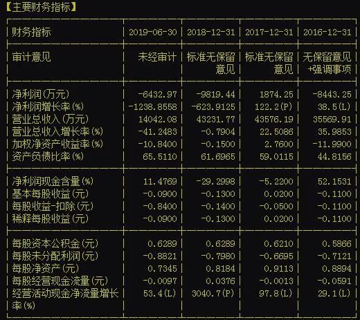 今年中报显示,宝塔实业净利润亏损高达6432.97万元,而该公司已于去年亏损高达9819.44万元,其主要财务指标可以用“烂”来形容。