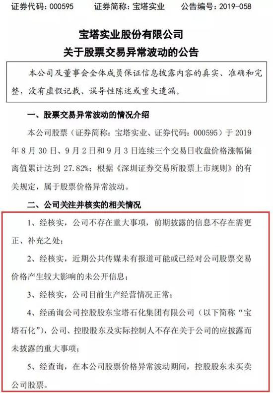 3日晚间,宝塔实业发布公告称,公司目前未进行重组,不存在涉及本公司控股权发生或拟发生较大变化的情况。