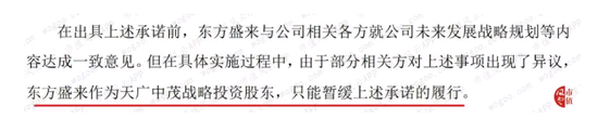 至此,天广中茂有两大疑团:东方盛来要追求实际控制人的地位而来的吗?后面为什么不兑现承诺?
