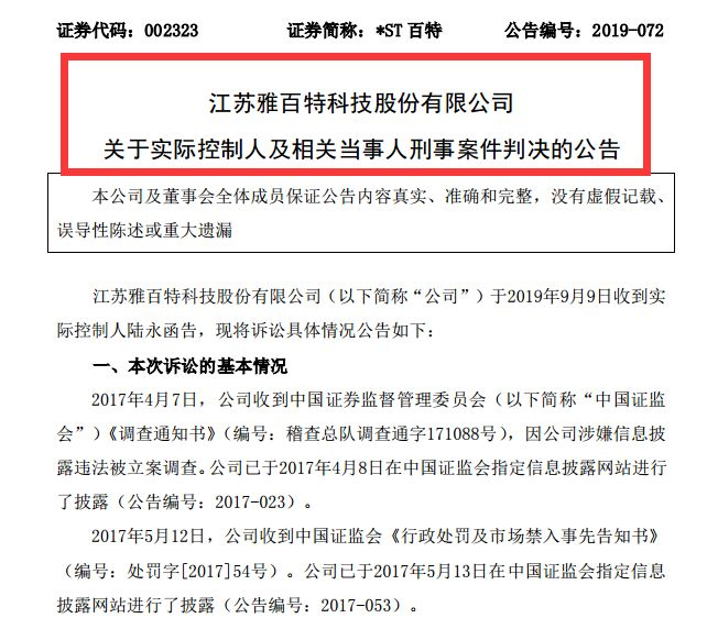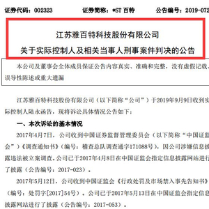 27个一字跌停后,雅百特(*ST百特 )实控人被判刑了。