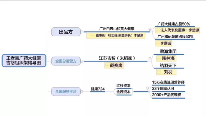 据了解,上述代理商为王老吉吉悠项目运营方——苏州皓羽天下科技发展有限公司(下称皓羽天下)旗下代理商。2019年1月14日,王老吉广药大健康新品“国潮·吉悠”2019吉悠品牌战略发布会上有对该公司的介绍,在发布会上,广药大健康吉悠产品供应公司负责人戴赛鹰戴总、广药大健康吉悠项目CEO刘羽刘总、广药大健康吉悠项目操盘手陶林海陶总以及“健康724”CEO王宇诚出席发布会。