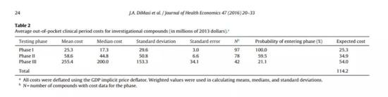 关于药物研发费用,百济神州认为2016年刊登在《卫生经济学期刊》(Journal of Health Economics)上的一篇论文《制药行业的创新:研发费用的最新估算》能做出相关解释,该论文包含了一张3期临床试验的相关费用的表格。