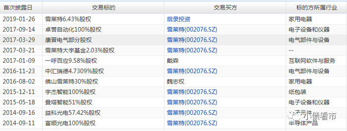 2015年,雪莱特宣布斥资1500万元收购无人机公司曼塔智能;2017年,公司以3.0亿元全资收购卓誉自动化,开拓动力锂电池生产设备业务......