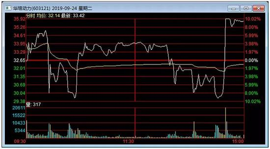 9月24日,华培动力股价反复上演直线拉升和直线下坠。尾盘1小时内,华培动力股价先从下跌2%猛烈杀跌至逼近跌停,随后又从跌停附近直线拉升至一度涨停,最终收涨9.31%,换手率达到惊人的77.15%。