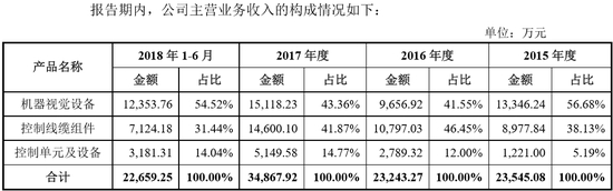 公司主营业务为智能设备及组件的研发、生产和销售,主要产品包括机器视觉设备、控制线缆组件、控制单元及设备。公司已成为苹果、华为、小米、OPPO、VIVO 等知名企业或其代工厂商的重要机器视觉设备供应商。