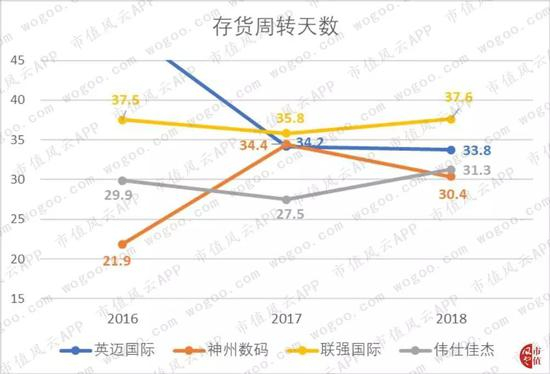 其中2018年,公司的存货周转速度是最快的,仅30.4天,存货周转速度最慢的是联强国际,达38.3天。