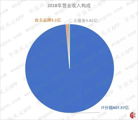 由于分销业务体量实在太大,业务构成上仍以分销及增值业务为主,占比98.67%,云服务和自主品牌分别占比0.71%和0.62%。