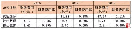 然而从财务费用和费用率对比来看,神州数码的财务费用其实在行业内属于正常水平。2018年,收入规模最大的英迈国际财务费用率最高,为1.11%左右,伟仕佳杰业务规模较小,财务费用率也较低,为0.38%。