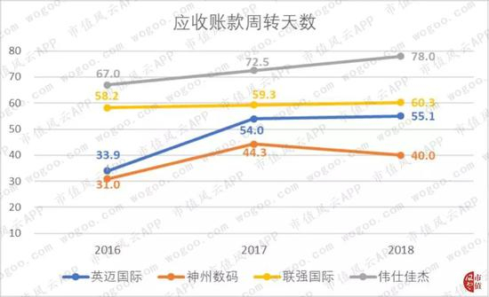 就整体回款水平来说,公司的应收账款周转速度最快,2018年为40天;伟仕佳杰的周转速度最慢,2018年高达78天。