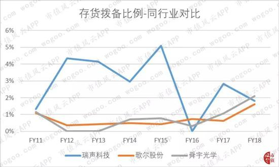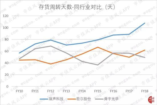 从宏观环境来看,智能手机出货量呈现下滑态势,上游供应商们例如歌尔股份和舜宇光学纷纷加大存货减值计提力度。但是瑞声科技,在最大客户苹果出货量下降最为明显、公司存货周转天数明显上升的大背景下,反而降低了自己的存货拨备比例,风云君认为公司的计提比例不足。