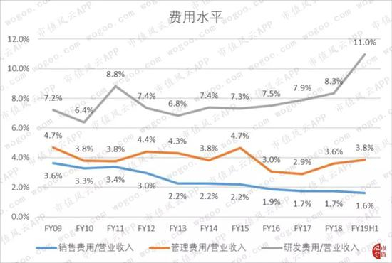 2019年上半年,公司的研发投入为8.3亿元,占总营收比重为11%。
