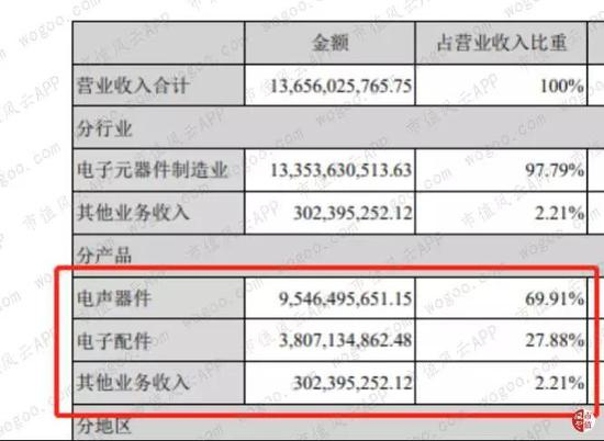 早年间,歌尔股份还叫“歌尔声学”,在2015年的时候电声器件贡献的营收占比高达69.9%。