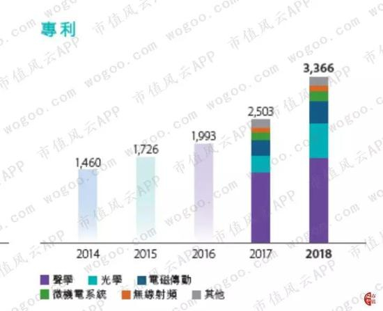 2018年,公司净新增专利863项,同比增长34.5%,增速高于年化复合增长率。虽然年报中未披露各个分部的明细数据,但是可以看到光学专利增长迅猛,这也跟公司近年来大力发展光学业务部门有关。