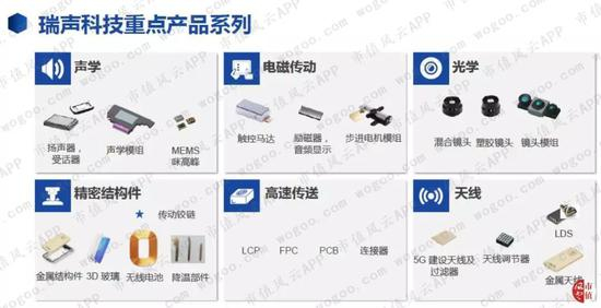 瑞声科技为消费电子行业提供全球最新的微型技术元器件解决方案,公司不仅是全球领先的微型声学器件(包括多种微型扬声器模组、扬声器、受话器及微机电系统麦克风)供应商,同时也提供设计多个分部的综合解决方案,包括触控马达、无线射频结构件及光学器件。