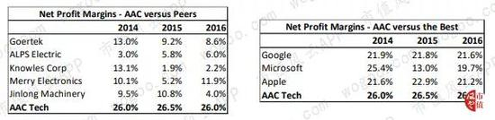 2017年5月11日,做空机构Gotham City发布了一篇名为《为什么瑞声科技的利润率比苹果更高更平滑,Part1》的做空报告的预览版本,报告中指出瑞声科技的利润率不仅远高于同行,而且比Google、微软和苹果等顶尖公司的利润率还要高。