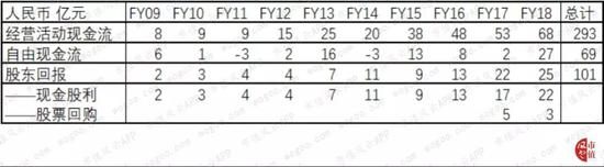 在过去完整的10个年度中,公司主要通过发放现金股利的方式,为股东创造了总计101亿元的回报,比自由现金流总额(69亿)还多,说明公司通过借钱为股东提供回报。