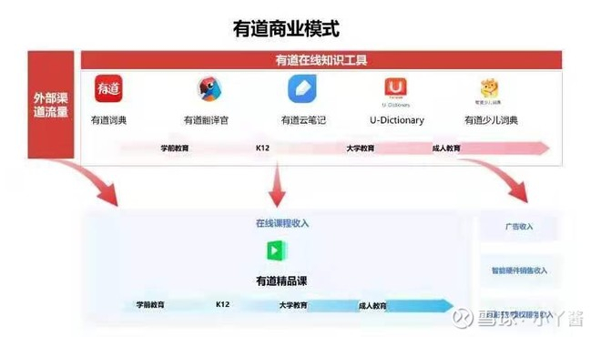 有道的核心逻辑为,用户基数达到一定规模时,通过广告将其变现,同时可以将这一批原始流量导流至在线课程和智能设备等其他产品序列。