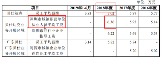 不过贝仕达克将位于深圳的公司和位于深圳市以外的子公司进行了区分。据招股书,位于深圳的母公司贝仕达克2018年研发技术人员的年薪为7.59万元,高于深圳市2018年平均工资水平。