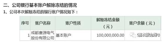 从上述信息来看,截止到9月6日账户被冻结的时候,唐源电气银行基本户中的资金余额仅有511.64万元;而根据公开数据披露,截止到上半年末,唐源电气母公司的货币资金余额高达1.36亿元。
