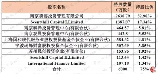 先介绍一下上市时公司的股权结构,上市前公司共有9名股东,持股比例如下: