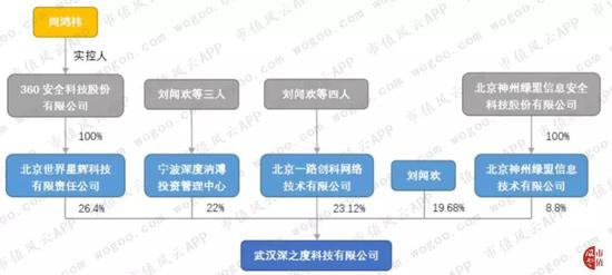 从其股权结构来看,深度科技共有五个股东,其中大股东三六零和占比最小的股东绿盟科技均为A股上市公司。持股最多的为深度科技创始人刘闻欢,持股比例为54.85%。