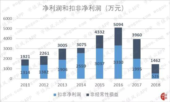更不容乐观的是扣非净利润,下滑速度快于净利润,2018年非经常性损益首次超过扣非净利润,后者占净利润比重仅36%。