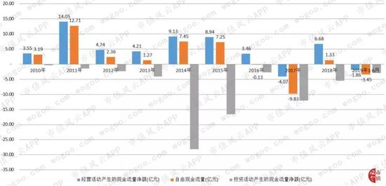 公司自上市以来,投资活动的现金流量持续净流出,经营活动现金流量2017年首次为负,但2016年公司的自由现金流量就已经是负数了,现金流量其实十分紧张!