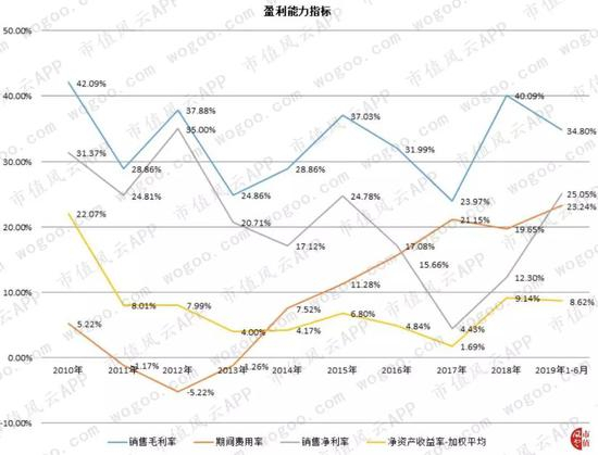 2010年至2019年6月,公司的盈利水平一直处于波动的状态,极不稳定!