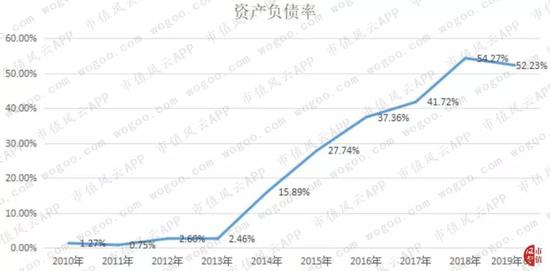 上市公司现金流趋紧以及借新还旧的现状,也将资产负债率推到了至高点。2018年公司的资产负债率达到了54.27%,长期偿债压力增加。