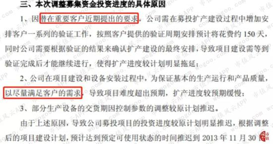 于是,上市公司将该项目延期至2012年底,原因是新生产线对现有产品造成了不利影响!