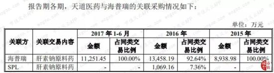 2015年至2017年1-6月,多普乐向海普瑞的采购金额分别为8,938.98万元、14,527.34万元、11,251.45万元,占相应期间采购总额的比例分别为77.98%、66.47%、64.48%。