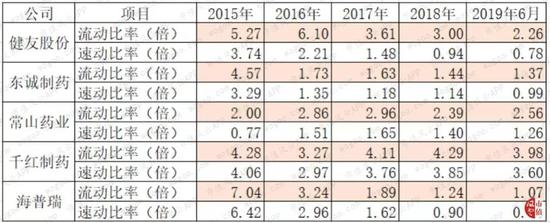 单看公司2018年的资产负债率的话,也并不算高,但是没有对比就没有伤害!选取同处于肝素钠领域的医药公司进行对比来看,海普瑞的资产负债率也是远远高于同行业的其他公司;另外,从短期偿债能力的比较情况来看,海普瑞的情况也是最差的!