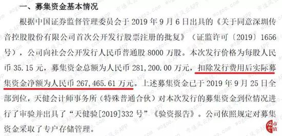 而扣除发行费用后,传音控股实际募资净额为26.75亿元。