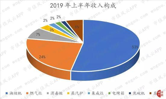 目前已推出蒸汽炉、集成灶、电烤箱、洗碗机等产品。2019年上半年油烟机收入占比53%,燃气灶占比24%,消毒柜占比7%。新品类的收入贡献比例逐渐增加。