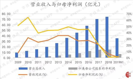 2019年上半年营收同比仅增长1%,归母净利润增长2%。