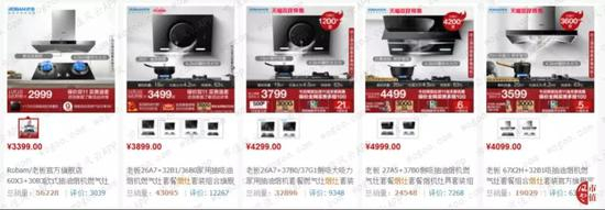 同一个电商平台,老板电器旗舰店烟灶套装价格普遍在3000-5000元之间,低于美大集成灶。