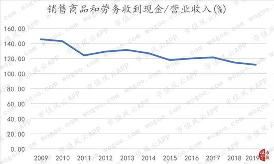 获现能力强,现金收入比虽然呈下降趋势,但仍不低于110%。