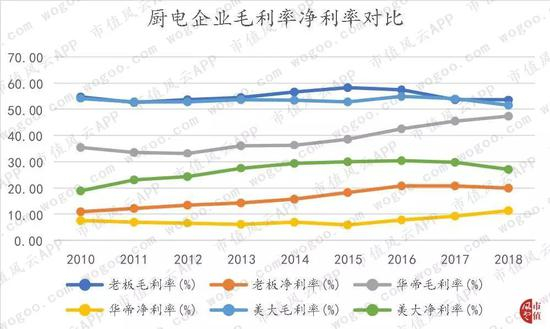 浙江美大毛利率与老板电器持平,超过50%。净利率高达30%,远超老板电器、华帝股份。