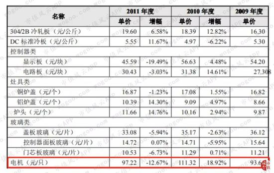 厨电产品的主要原材料是各种规格的冷轧板(钢材)、风机和电器开关零部件。风机大量应用铜线、铜丝,受铜价波动影响较大。