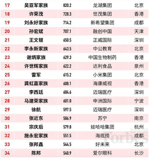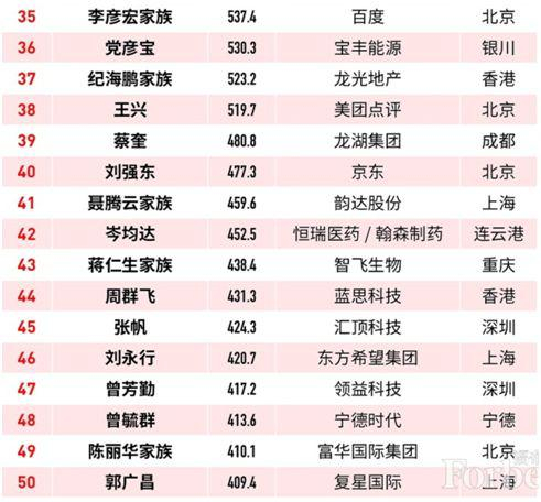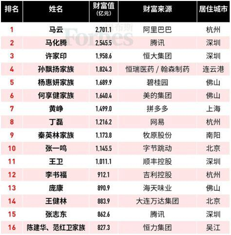 11月7日,福布斯发布2019年度中国富豪榜,400位中国富豪登上这份顶级财富榜单。