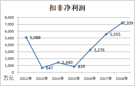 从2012年开始看的话,建科机械的扣非净盈利并非像最近三年那么直线增长,而是2012年已经到了一定规模,2013-2015大幅下滑,到2016年才恢复增长。