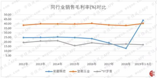 2017年以前,星徽精密的销售毛利率一直位于坚朗五金和*ST罗普之间,由于*ST罗普原材料为铝材,与星徽精密原材料主要为钢材,二者略有区别。