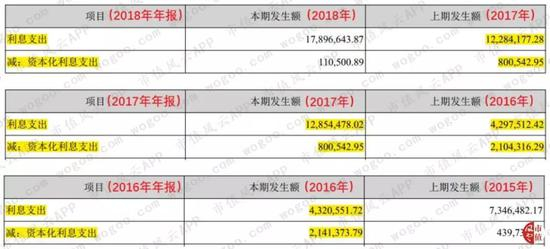 既然提起利息费用,风云君顺便在这里提一嘴:2016年、2017年及2018年三年年报中披露的利息费用数据似乎在年份间略有出入: